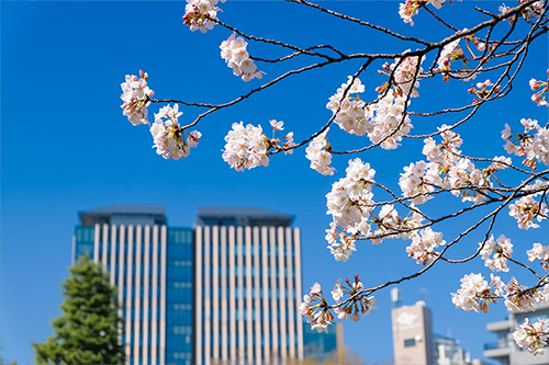 タワー正面にはイベントで賑わうカラヤン広場、世界屈指の音楽ホールであるサントリーホール、ANAインターコンチネンタルホテル東京などからなるアークヒルズがあります。